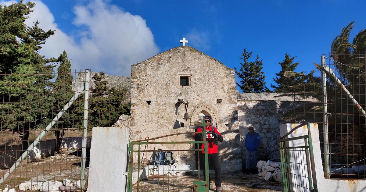 Ακριβώς κάτω από το εκκλησάκι, που είναι χτισμένο σε ένα φυσικό μπαλκόνι, ξεκινά ένα απότομο φαράγγι και οι νότιοι γκρεμοί των Αστερουσίων, ένα από τα πιο εντυπωσιακά τοπία της Κρήτης.