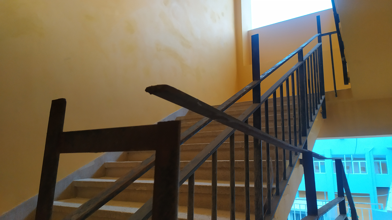 1. Την κουπαστή της σκάλας που οδηγεί στον όροφο του βορινού κτιρίου και η οποία αποτελείται από επικίνδυνα προεξέχοντα σίδερα, αλλά και σημεία από τα οποία μπορούν να χωρέσουν τα κεφάλια των παιδιών με σοβαρό κίνδυνο για τη ζωή τους.
