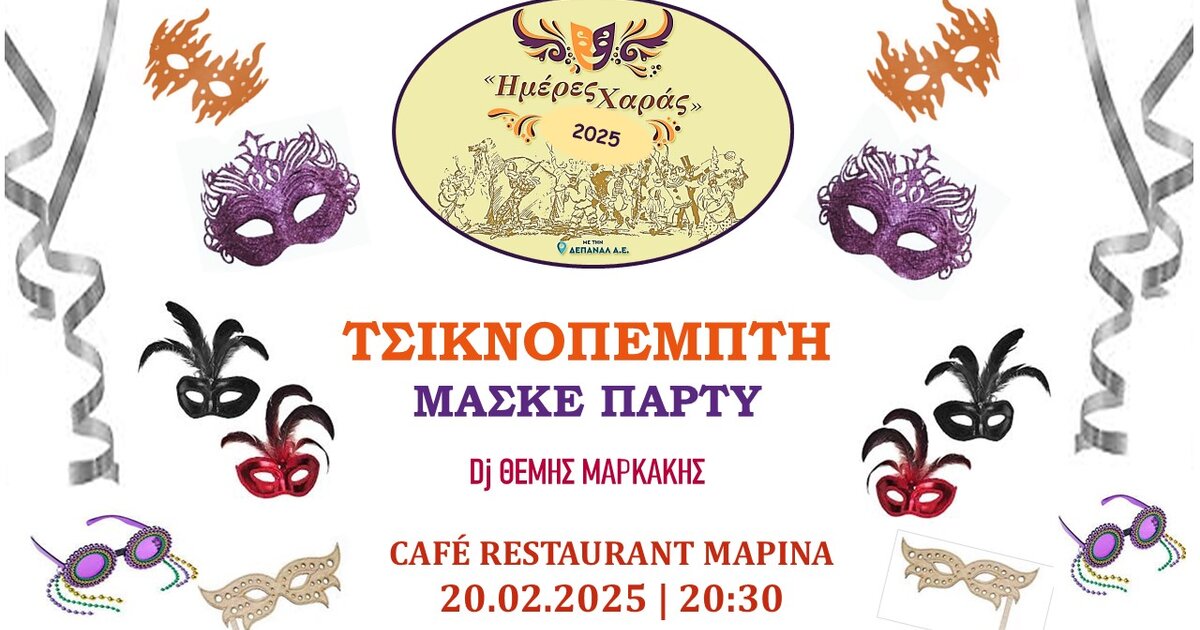 «Ημέρες Χαράς» με Αποκριάτικο μασκέ πάρτι την Τσικνοπέμπτη Στο Café – Restaurant «Marina»