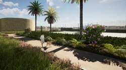 Σύμφωνα με τον προγραμματισμό θα κατασκευαστούν σε νέα θέση δύο διπλά γήπεδα συνολικού εμβαδού 1.273 μ², νέα πτυσσόμενη περίφραξη ελαφριάς κατασκευής και θα τοποθετηθεί λυόμενος οικίσκος αποδυτηρίων. Οι εργασίες περιλαμβάνουν επίσης εκσκαφές, καθαιρέσεις, κατασκευή νέων κρασπέδων από σκυρόδεμα, διαμόρφωση παρτεριών και δαπέδωση με εμφανή αδρανή υλικά λατομείου ίδιου τύπου με αυτά που έχουν χρησιμοποιηθεί στις διαδρομές του Ισόπεδου Τμήματος. Προβλέπεται επίσης κατασκευή καθιστικών από σκυρόδεμα με επένδυση από λωρίδες ξυλείας, τοποθέτηση φωτιστικών σωμάτων LED, νέες φυτεύσεις με σύστημα άρδευσης και τοποθέτηση μικρών ξύλινων κάδων απορριμμάτων στον περιβάλλοντα χώρο.