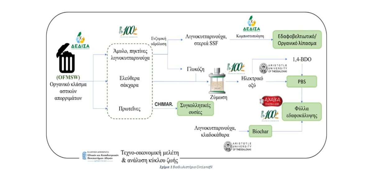 Η ΔΕΔΙΣΑ Α.Ε. (ΟΤΑ), σε συνεργασία με τρία ελληνικά πανεπιστήμια: το Γεωπονικό Πανεπιστήμιο Αθηνών, το Αριστοτέλειο Πανεπιστήμιο Θεσσαλονίκης, το Εθνικό και Καποδιστριακό Πανεπιστήμιο Αθηνών, καθώς και με τις εταιρείες Chimar Hellas και ΑΧΑΪΚΑ ΠΛΑΣΤΙΚΑ Α.Ε.Β.Ε., θα συμβάλει στην ανάπτυξη καινοτόμων και αειφόρων εργαστηριακών και βιομηχανικών πιλοτικών διεργασιών μετατροπής του οργανικού κλάσματος των σύμμεικτων αστικών αποβλήτων σε: