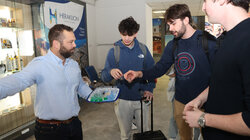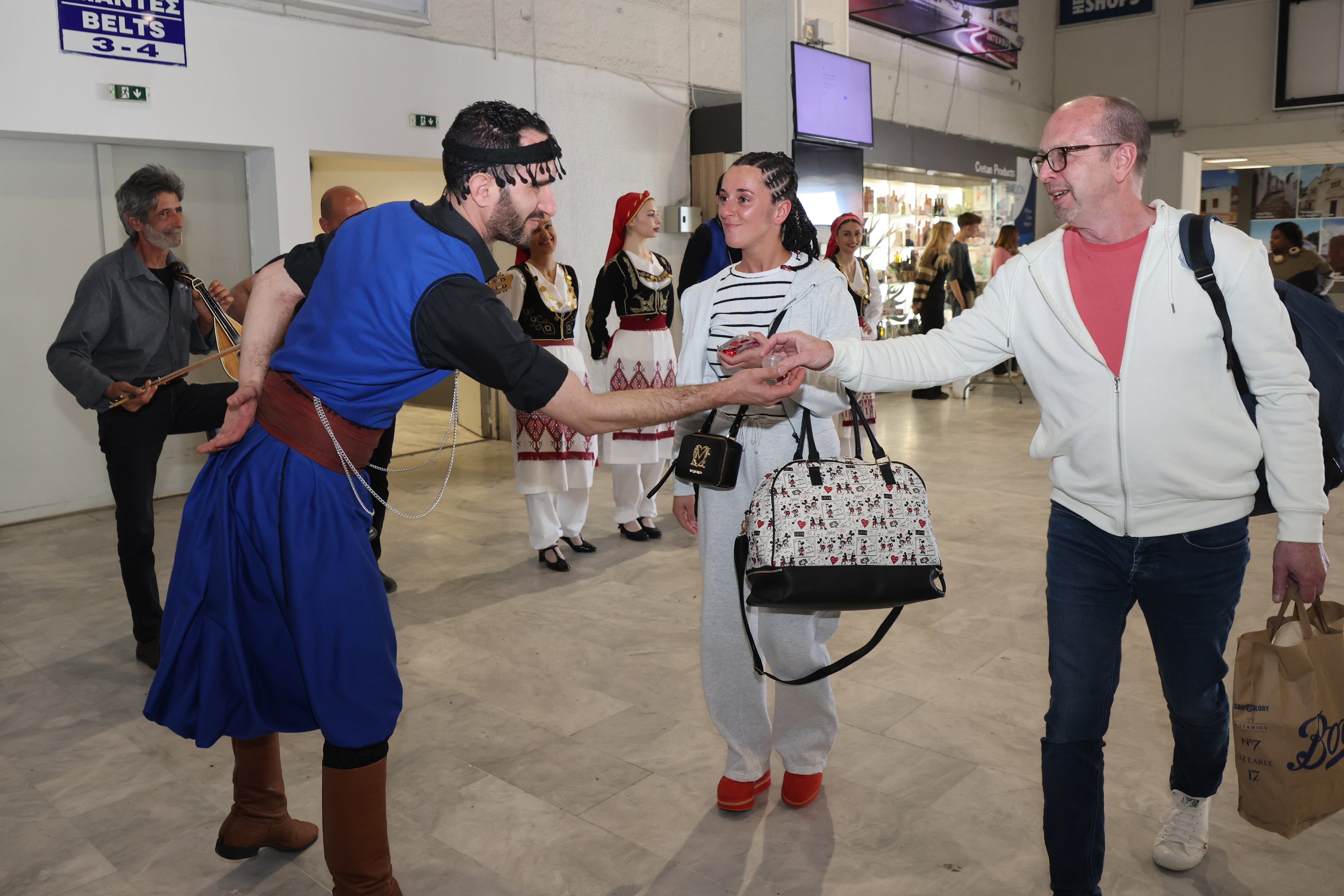 Μάλιστα, μια μικρή υποδοχή πραγματοποιήθηκε λίγο μετά τις 12.00 το μεσημέρι στο αεροδρόμιο "Ν.Καζαντζάκης", παρουσία του αερολιμενάρχη Ηρακλείου Ι.Ουρανού, του αντιπεριφερειάρχη Ηρακλείου Νίκου Συριγωνάκη και μελών παραδοσιακών κρητικών συγκροτημάτων, ενώ οι επισκέπτες με το που πάτησαν ... Κρήτη, πήραν "γεύση" από το νησί, δοκιμάζοντας παραδοσιακή τσικουδιά και σοκολατάκια.