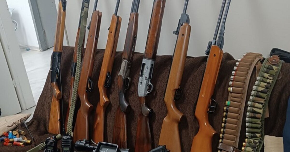 Μεταξύ άλλων, βρέθηκαν 4 κυνηγετικά όπλα, 5 αεροβόλα, 3 μαχαίρια και μία διόπτρα