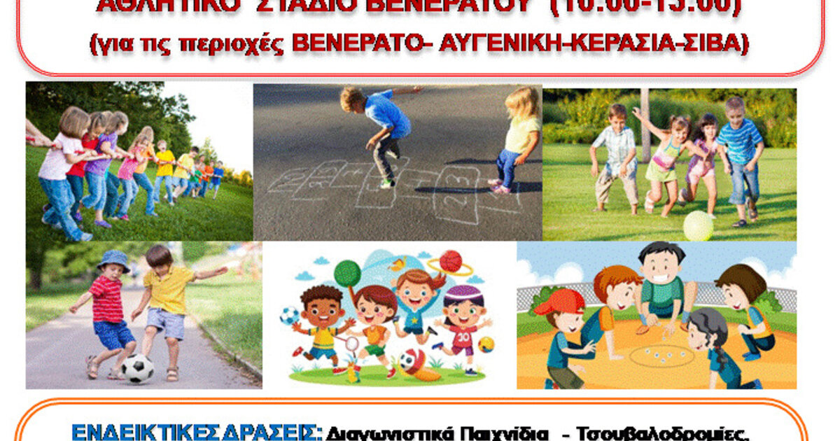 Στο Βενεράτο, συνεχίζεται το Σάββατο 31 Μαΐου, το πρόγραμμα «#Get Active-Ηράκλειο», για την ενίσχυση της φυσικής δραστηριότητας με τη μορφή παιχνιδιού για όλη την οικογένεια, στο πλαίσιο του ευρύτερου προγράμματος «Αθλητισμός για όλους» που υλοποιεί η Αντιδημαρχία Αθλητισμού του Δήμου Ηρακλείου.