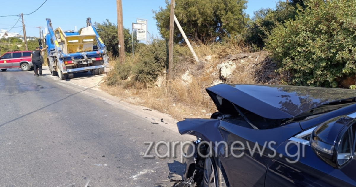 Το τροχαίο σημειώθηκε λίγο μετά τις 10:30 το πρωί στον δρόμο προς αεροδρόμιο, στο ύψος του Πυθαρίου, όταν συγκρούστηκαν ένα φορτηγό και ένα ταξί, όπως φαίνεται στις φωτογραφίες το zarpanews.gr.