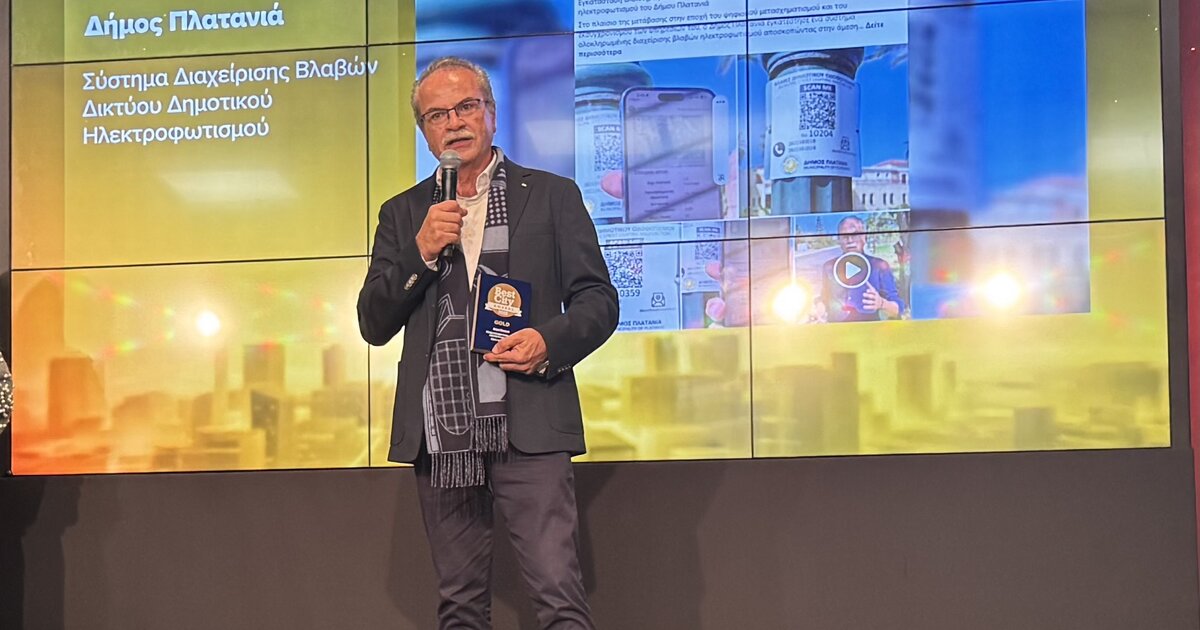 Με το Χρυσό Βραβείο στην κατηγορία “Έξυπνος αστικός φωτισμός” διακρίθηκε ο Δήμος Πλατανιά στη φετινή απονομή των «Best City Awards 2025», των βραβείων που επιβραβεύουν τις καινοτόμες και έξυπνες πρακτικές για τη λειτουργία των Δήμων, των Περιφερειών και άλλων φορέων. Στην τελετή που πραγματοποιήθηκε την προηγούμενη εβδομάδα στην Αθήνα, ο Δήμος Πλατανιά απέσπασε το Βραβείο GOLD για το έργο “Σύστημα Διαχείρισης Βλαβών Δικτύου Ηλεκτροφωτισμού Δήμου Πλατανιά.”
