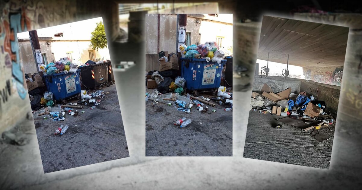 Κάτω από τη γέφυρα, τα σκουπίδια έχουν σχηματίσει έναν όγκο που παραπέμπει σε πρόχειρη χωματερή. Αντικείμενα κάθε είδους -μέχρι και ένα παλιό ψυγείο- δίνουν την εντύπωση ότι ο χώρος έχει αφεθεί χωρίς φροντίδα, με την έντονη δυσοσμία να επιτείνει την αίσθηση.