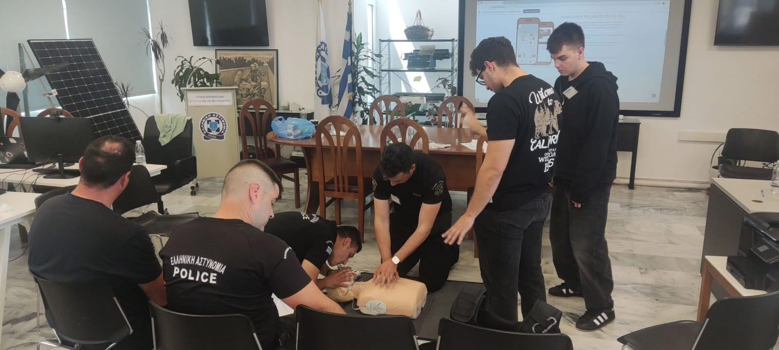 Η δράση έγινε σε συνεργασία με το Εργαστήριο Καρδιοπνευμονικής Αναζωογόνησης της Ιατρικής Σχολής του Πανεπιστημίου Κρήτης και τη Γενική Αστυνομική Διεύθυνση Κρήτης.