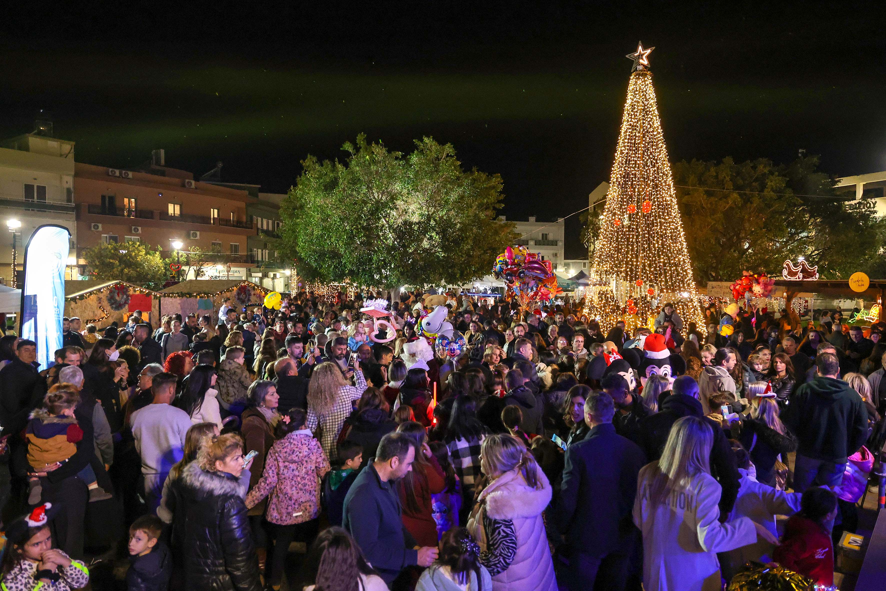 Ο Δήμαρχος Μενέλαος Μποκέας κάλεσε τα παιδιά, που μαζί με τις οικογένειές τους είχαν πλημμυρίσει την πλατεία, να μετρήσουν αντίστροφα, δίνοντας το σύνθημα για την επίσημη έναρξη των χριστουγεννιάτικων εκδηλώσεων του Δήμου. Με το άναμμα του δέντρου, δεκάδες πυροτεχνήματα φώτισαν τον ουρανό, προσφέροντας ένα εντυπωσιακό θέαμα που ενθουσίασε μικρούς και μεγάλους.
