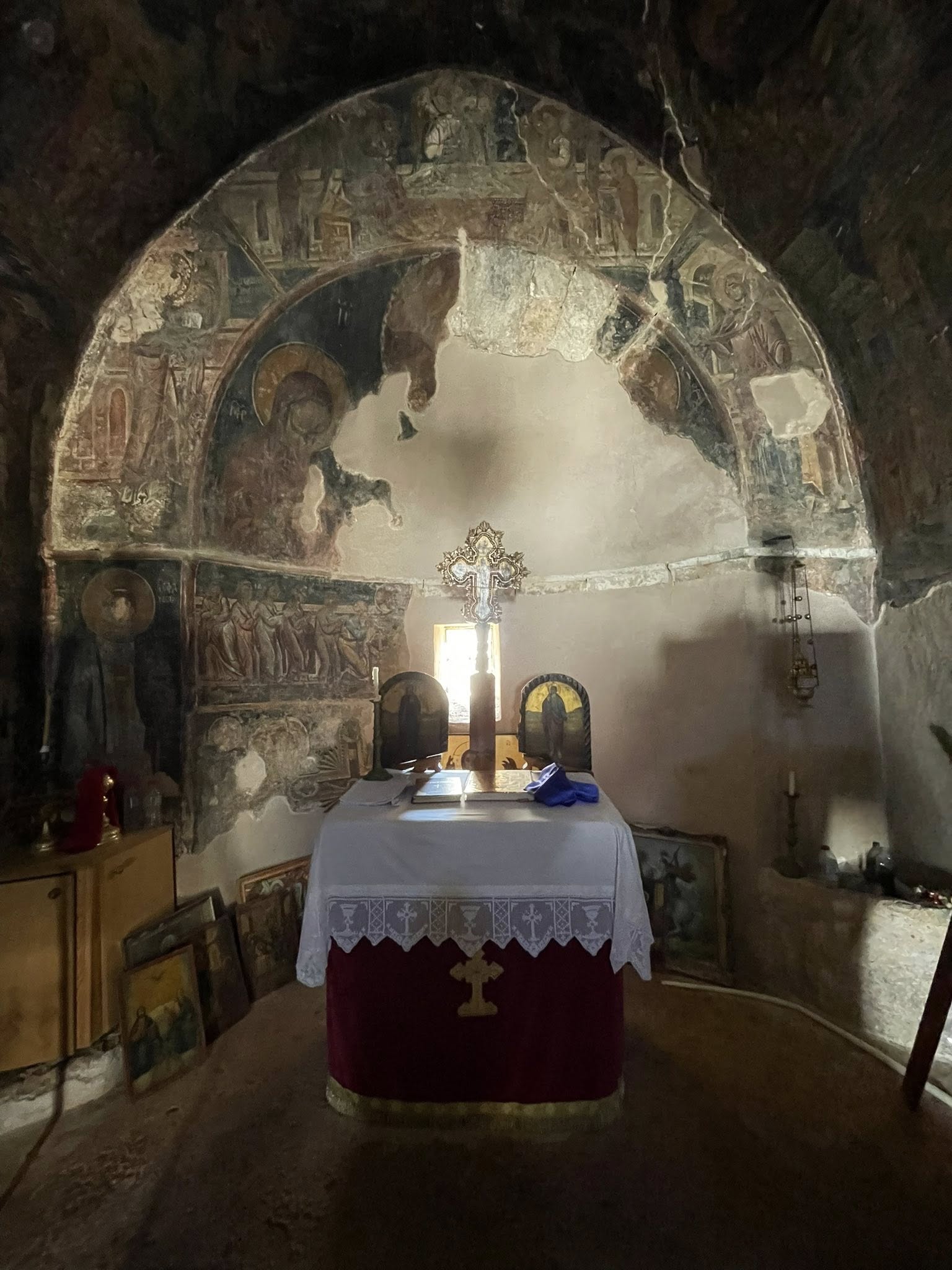 Η κυρία Μαρία Δαμιανάκη μας ξενάγησε στον βυζαντινό ναό του Αγίου Γεωργίου, ενώ οι κυρίες του Πολιτιστικού Συλλόγου Αποστολιανών, τράταρε τους μουσαφίρηδες μας το πιο γλυκό έθιμο της Πεδιάδας, τις ζαχαρωτές μαντινάδες.