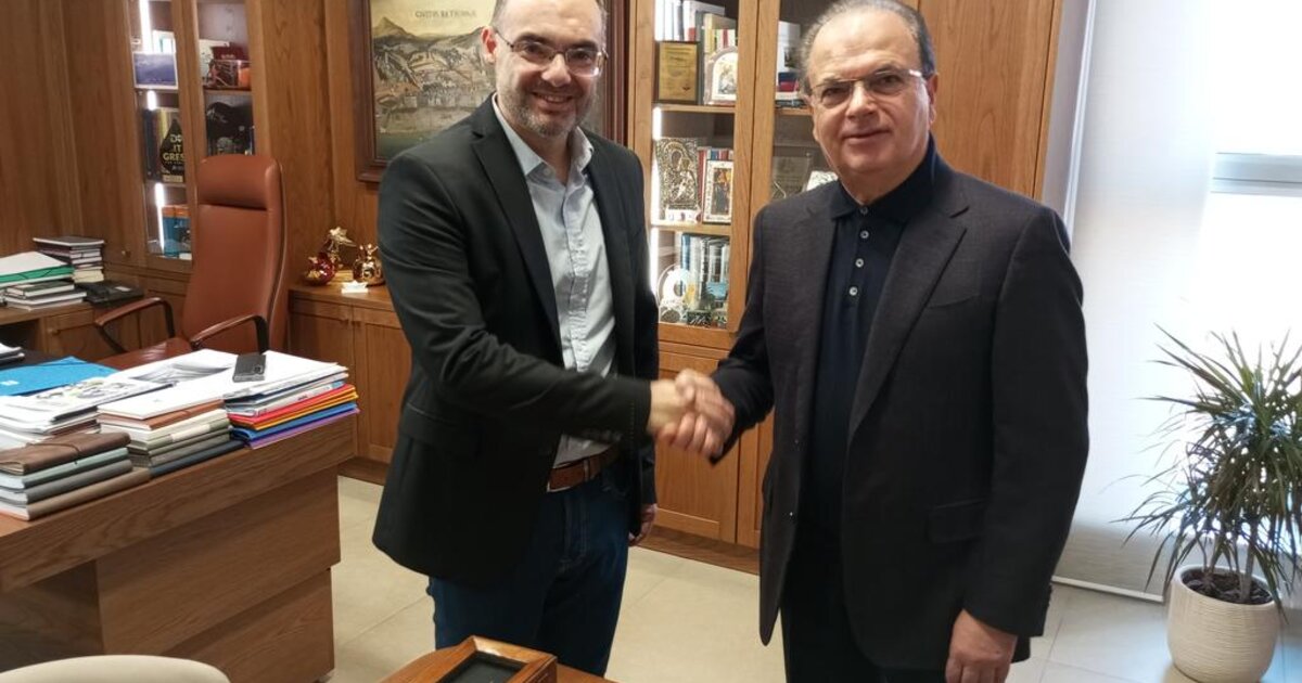 Ο Πρόεδρος της Π.Ε.Δ. Κρήτης, Δήμαρχος Ρεθύμνης κ. Γιώργης Χ. Μαρινάκης υποδέχθηκε σήμερα στο γραφείο του τον νέο μόνιμο υπάλληλο της Περιφερειακής Ένωση Δήμων κ. Κωνσταντίνο Μιχ. Καπετανάκη.