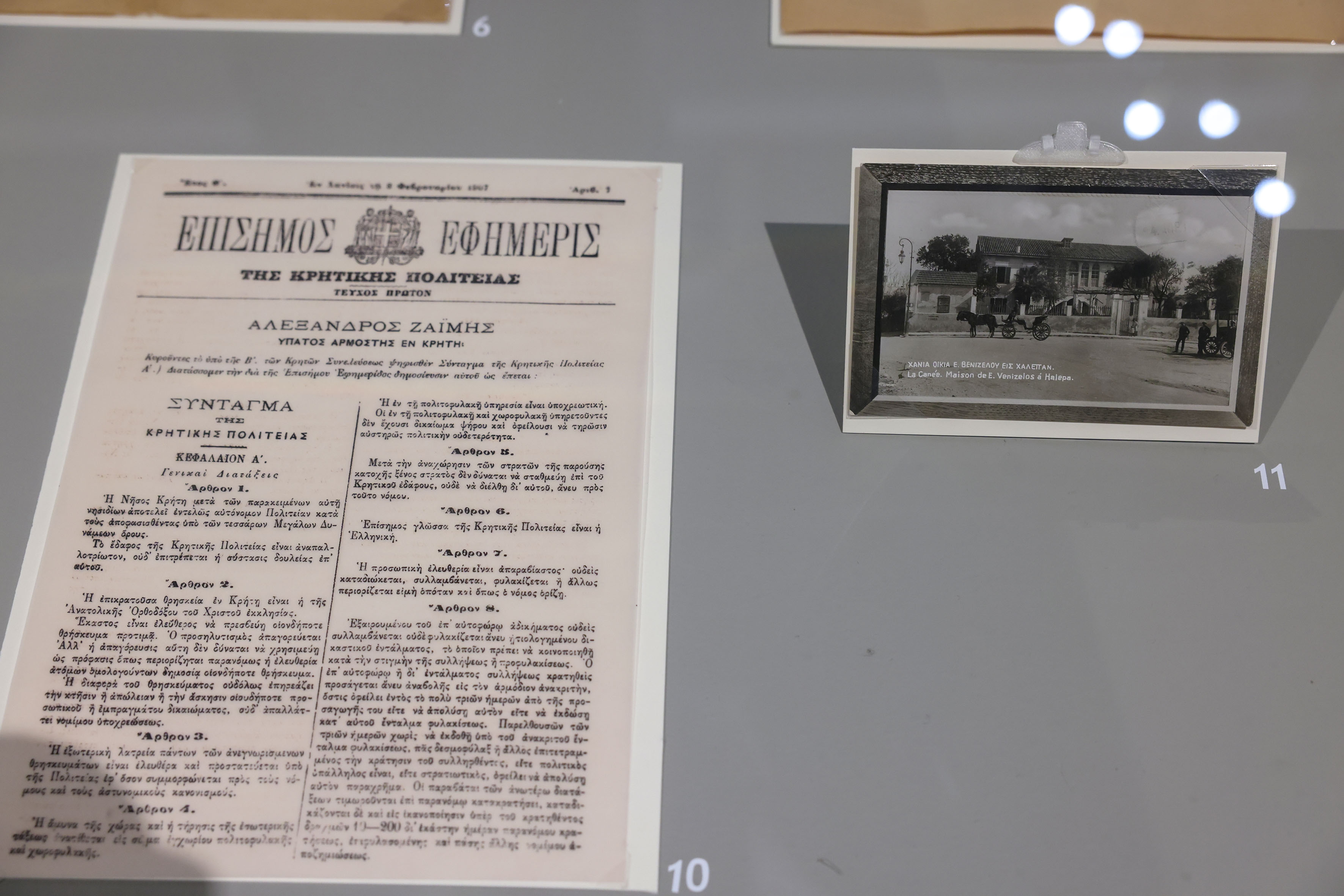 Υπενθυμίζεται ότι η έκθεση «Πολιτική και Κοινωνία στην Κρητική Πολιτεία 1898-1913» παρακολουθεί, σε συνδυασμό με τα μεγάλα πολιτικά και στρατιωτικά γεγονότα, τη σταδιακή συγκρότηση της νεοσύστατης κρατικής οντότητας, μέσα από τους θεσμούς που δημιουργούνται. Παράλληλα, προβάλλει όψεις της αγροτικής και αστικής ζωής της περιόδου, τις εξελίξεις στην κοινωνία, τα επιτεύγματα στον πολιτισμό και την παιδεία. Ο επισκέπτης, μέσα από τα πρωτότυπα τεκμήρια και τις αναπαραγωγές σπάνιου φωτογραφικού υλικού, μπορεί να αποκτήσει μια ζωντανή αίσθηση του ιστορικού χρόνου και της κοινωνίας της Κρήτης, στο γύρισμα του 19ου προς τον 20ό αιώνα.