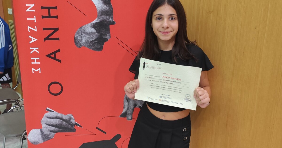 Η μαθήτρια της ΣΤ΄ τάξης του 36ου Δημοτικού Σχολείου Ηρακλείου - «Του Σχολείου της Μελίνας», Μελίνα Ευσταθίου, πήρε το πρώτο Πανελλήνιο βραβείο, με το έργο της: «Στα παλάτια της Κνωσού - Με τη φαντασία της Αμέλιας», βασισμένο στο έργο του Νίκου Καζαντζάκη: «Στα παλάτια της Κνωσού».