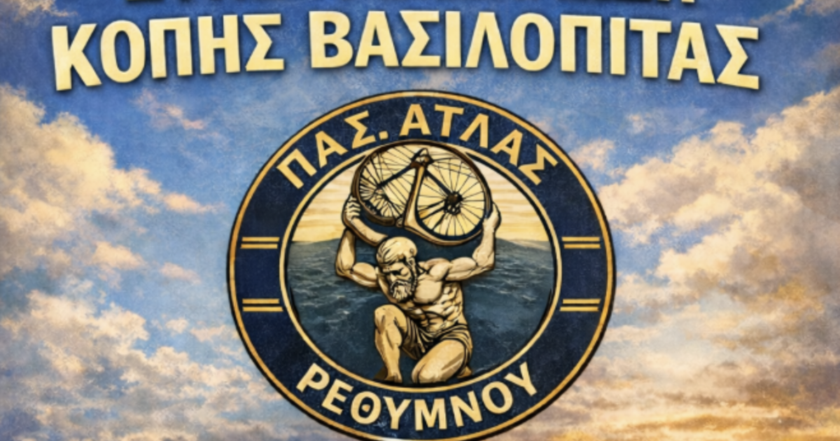 Ο ΠΑΣ Άτλας Ρεθύμνου καλωσορίζει το νέο έτος και προσκαλεί τα μέλη, τους αθλητές, τους φίλους και τους υποστηρικτές του στην ετήσια εκδήλωση για την κοπή της Πρωτοχρονιάτικης Βασιλόπιτας, σηματοδοτώντας την έναρξη του 2026 με αισιοδοξία, ενότητα και νέους στόχους.