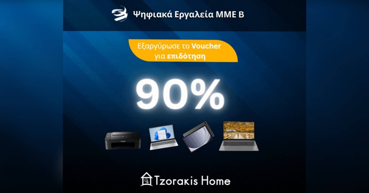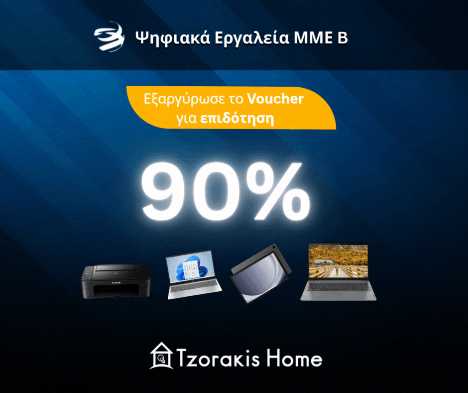 Είστε δικαιούχος του προγράμματος «Ψηφιακά Εργαλεία ΜΜΕ»; Μέχρι τις 3 Μαΐου εξαργυρώστε το voucher σας και αξιοποιήστε την επιδότησή σας στο Tzorakis Home, ενισχύοντας την επιχείρησή σας με σύγχρονες λύσεις σε laptop, desktop, tablets, εκτυπωτές και software.
