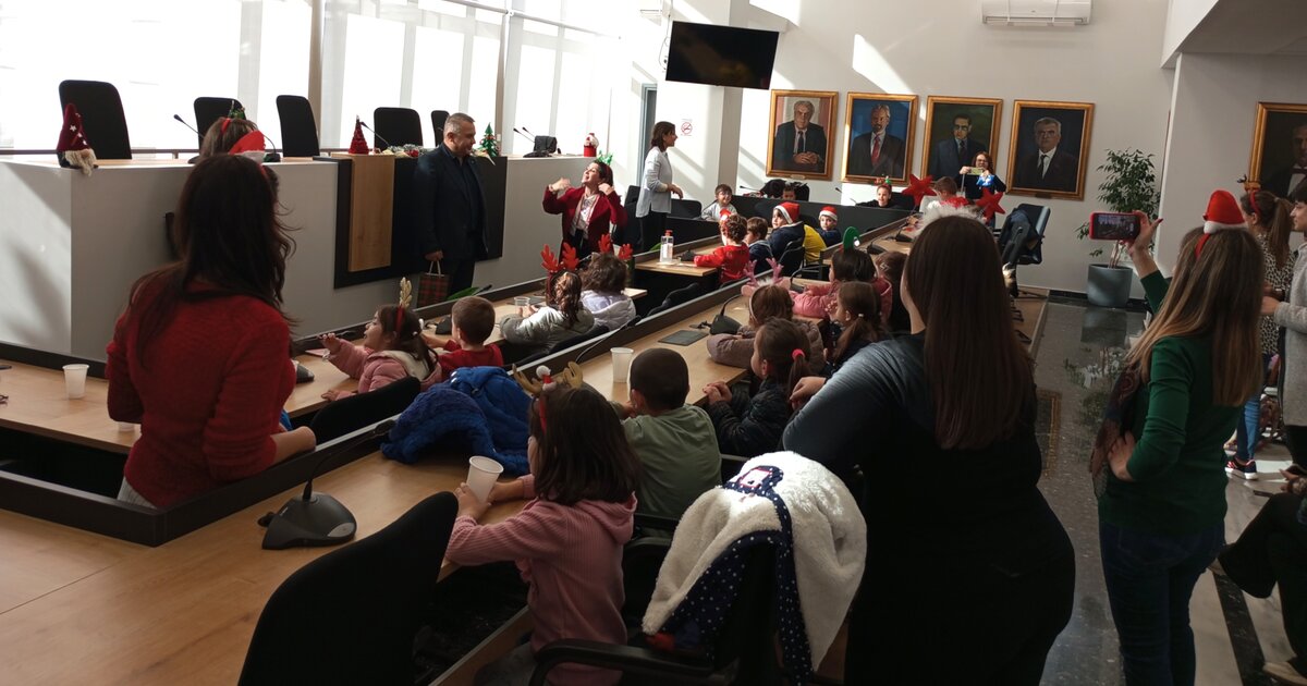 Στη συνέχεια, τη σκυτάλη πήραν οι μικροί μαθητές και μαθήτριες του 4ου Νηπιαγωγείου. Με ενθουσιασμό και παιδικές φωνές, τραγούδησαν τα κάλαντα και γιορτινά τραγούδια, μεταφέροντας το κέφι τους σε όλο το Δημαρχείο.