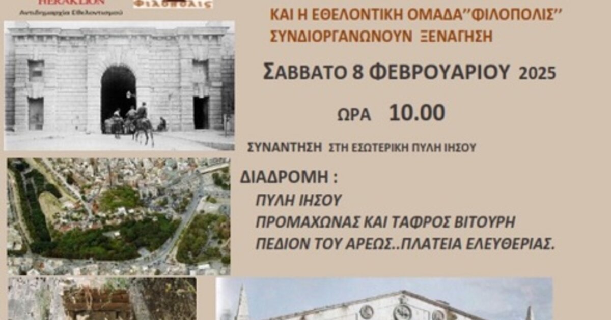 Στην "καρδιά" του Ηρακλείου θα πραγματοποιηθεί, το Σάββατο 8 Φεβρουαρίου, η επόμενη ξενάγηση στο πλαίσιο του δεύτερου κύκλου των δωρεάν ξεναγήσεων που εγκαινίασε ο Δήμος Ηρακλείου και η Αντιδημαρχία Εθελοντισμού σε συνεργασία με την Ομάδα «Φιλόπολις» και την εθελοντική προσφορά της ξεναγού Αθηνάς Κυριακάκη- Σφακάκη.