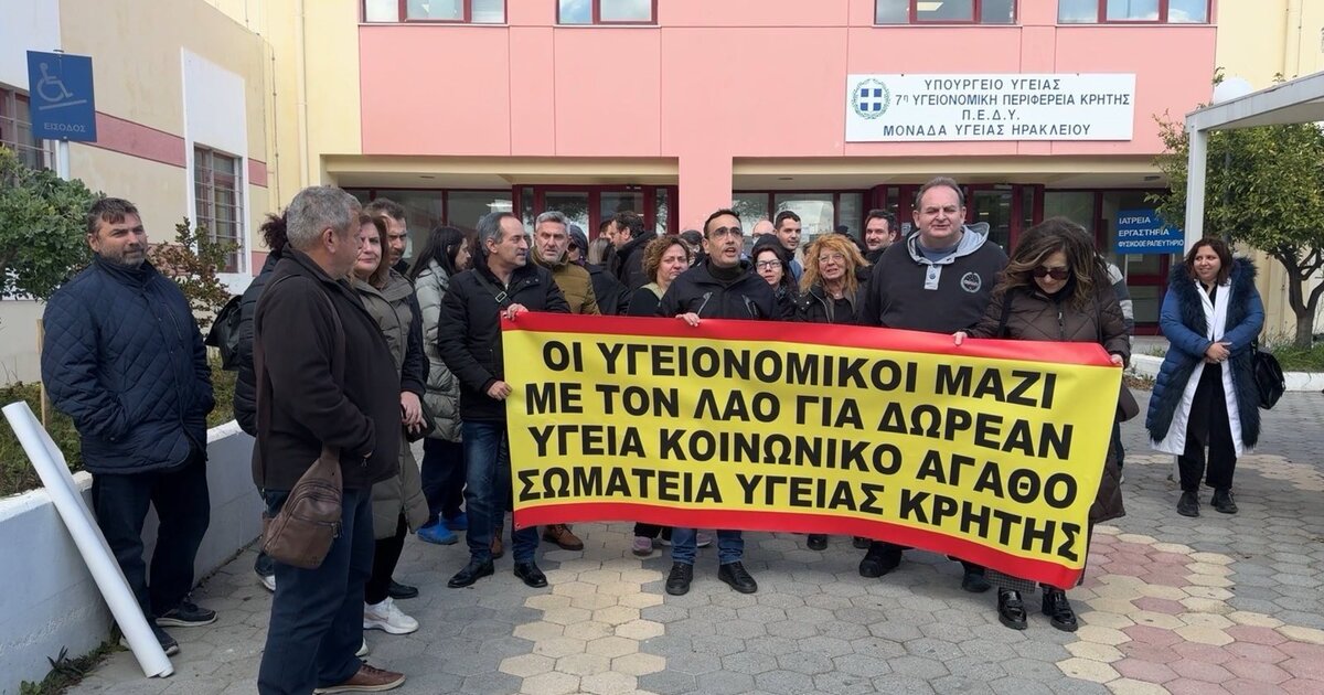 Μαζική παράσταση διαμαρτυρίας πραγματοποιήθηκε στα γραφεία της 7ης ΥΠΕ. Στην διαμαρτυρία συμμετείχαν το σωματείο εργαζομένων ΠΑΓΝΗ, η Ένωση εργαζομένων Βενιζελείου, ο σύλλογος εργαζομένων νοσοκομείων Αγ. Νικολάου, Ιεράπετρας, Νεάπολης, η Ένωση γιατρών Ρέθυμνου, Ηράκλειου, ο σύλλογος εργαζομένων ΠΦΥ, μαζική αντιπροσωπεία ειδικευομένων γιατρών του ΠΑΓΝΗ, ο πρόεδρος του ΝΤ ΑΔΕΔΥ.