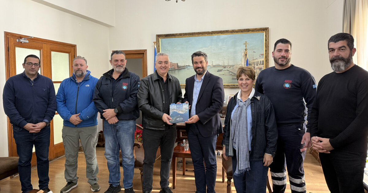 Τον Πρόεδρο των Εργαζομένων του Εθνικού Κέντρου Άμεσης Βοήθειας (ΕΚΑΒ) και Αντιπρόεδρο της ΠΟΕΔΗΝ, Γεώργιο Μαθιόπουλο, υποδέχθηκε σήμερα, 8 Ιανουαρίου 2026 στο γραφείο του ο Δήμαρχος Χανίων, Παναγιώτης Σημανδηράκης, παρουσία του Γενικού Γραμματέα του Δήμου, Γιώργου Φραγκιαδάκη, της Αντιδημάρχου Κοινωνικής Πολιτικής, Ελένης Ζερβουδάκη και του Προέδρου του Δημοτικού Λιμενικού Ταμείου και Αντιδημάρχου Παλιάς Πόλης, Μανώλη Κοτσιφάκη.