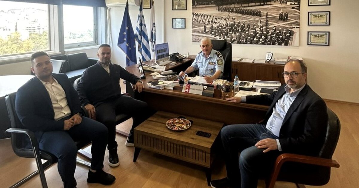 Την Πέμπτη 15 Μαΐου 2025, στο Αρχηγείο της Ελληνικής Αστυνομίας, πραγματοποιήθηκε επίσημη συνάντηση του Προέδρου της Ένωσης Αστυνομικών Υπαλλήλων Νομού Ηρακλείου, κ. Πικράκη Γεωργίου, και του Γενικού Γραμματέα, κ. Ανθουλάκη Κωνσταντίνου, με τον Επιτελάρχη της Ελληνικής Αστυνομίας Αντιστράτηγο κ. Χαράλαμπο Καλόγηρο. Το Προεδρείο της Ένωσής συνόδευσε ο Γενικός Γραμματέας της Πανελλήνιας Ομοσπονδίας Αστυνομικών Υπαλλήλων (Π.Ο.ΑΣ.Υ.), κ. Χρήστος Μαυραγάνης.