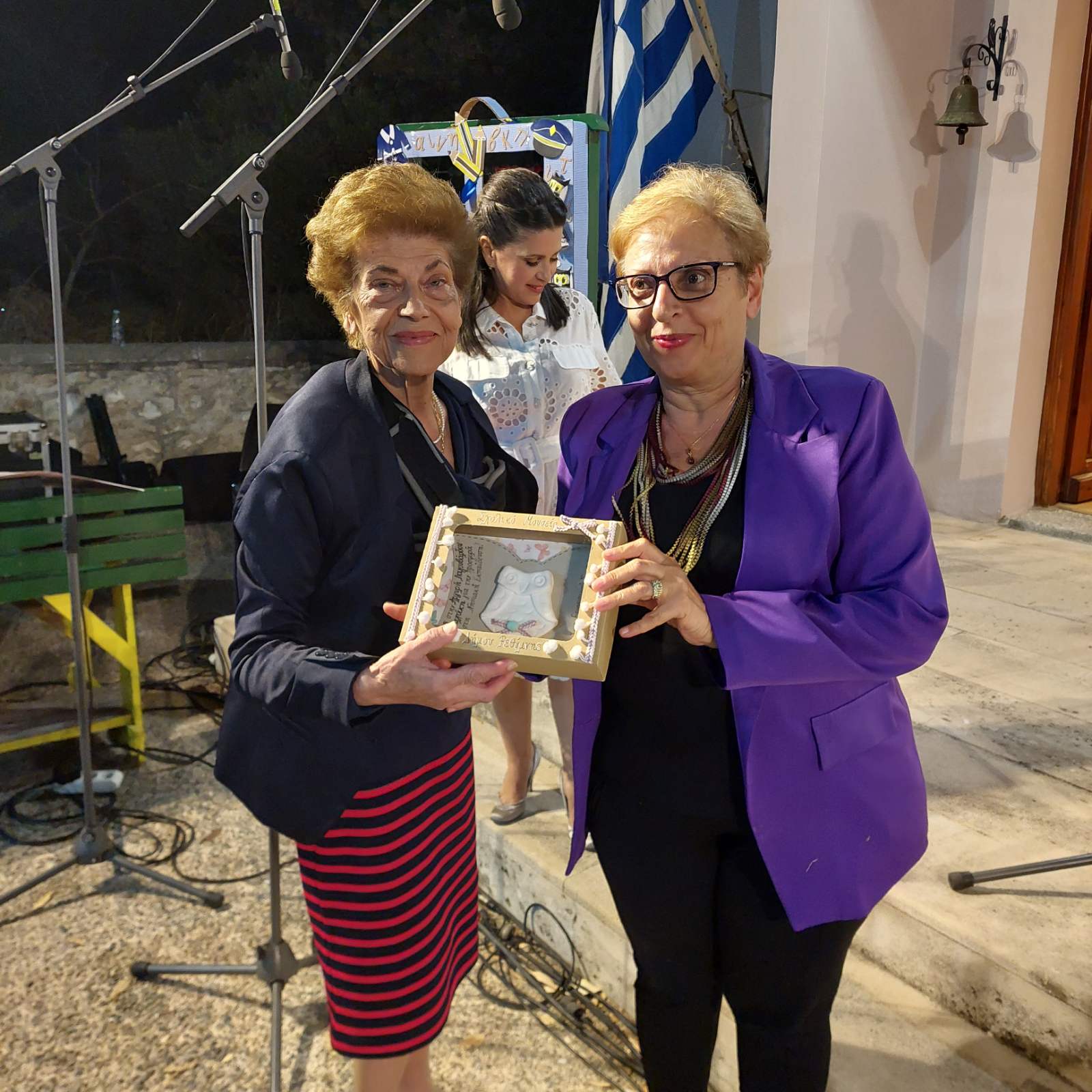 Η βραδιά κορυφώθηκε με την απονομή επαίνων στις κυρίες Άννα Μουνδριανάκη-Τζαγκαράκη, Αργυρή Λαγουβάρδου-Πατσαχάκη, Σταυρούλα Τσερβάκη-Λαγκουβάρδου και Αγγέλα Μάλμου, για το έργο που άφησαν ανεξίτηλο το αποτύπωμά τους στην νηπιακή εκπαίδευση στο Ρέθυμνο, στις οποίες απένειμαν ο Μητροπολίτης Ρεθύμνης & Αυλοποτάμου κ. Πρόδρομος, η Αντιπεριφερειάρχης Ρεθύμνης κα Λιονή, ο Δήμαρχος Ρεθύμνης κ. Μαρινάκης, ο Διευθυντής Π.Ε. Ν. Ρεθύμνης κ. Καρβούνης και η Σχολική Σύμβουλος Νηπιαγωγών κα Σιμιτζή-Δέλλα. Στο πρόσωπό τους τιμήθηκαν όλες κι όλοι οι νηπιαγωγοί του Ρεθύμνου.