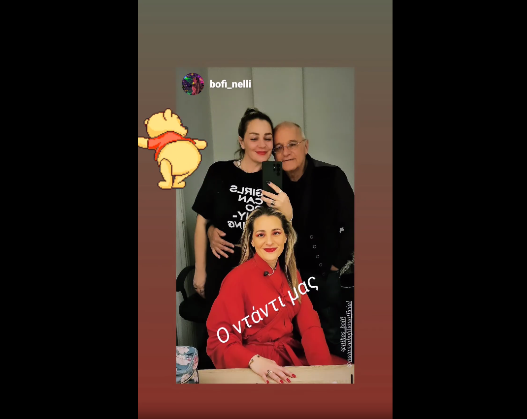 Η αδερφή της Νατάσας Μποφίλιου, Νέλη, δημοσίευσε στα Instagram stories μια φωτογραφία, στην οποία βλέπουμε βλέπουμε τις δυο τους να ποζάρουν μαζί με τον πατέρα τους, Νίκο.