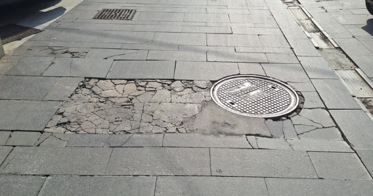 - Οπουδηποτε εγινε καποια επιδιορθωση ζημιας, λογω ελλειψης πλακιδιων, ο δημος εβαλε τσιμεντο χαλωντας την ομοιομορφια του δρομου.