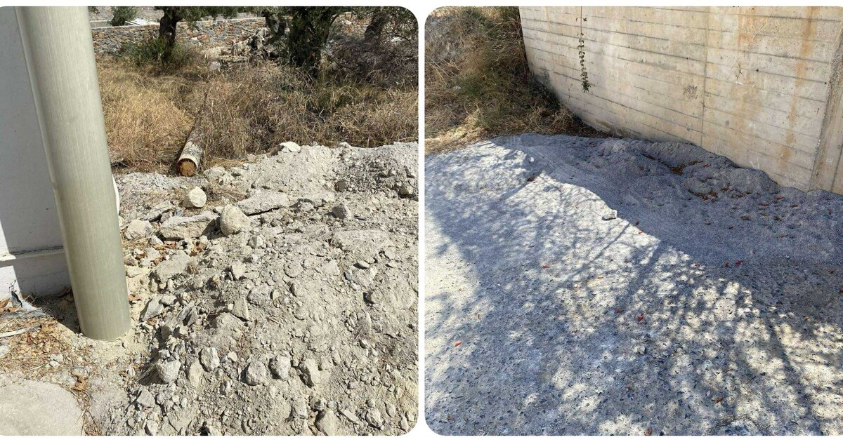 Όμως η χαρά κράτησε μόνο μερικές ώρες. Πολύ γρήγορα συνειδητοποίησαν ότι έγινε μία «ξεπέτα»-ναι, δυστυχώς-έστρωσαν στο …ποδάρι τον δρόμο και τα υπόλοιπα υλικά που περίσσεψαν, τα άφησαν απλώς εκεί, όπως καταγγέλλεται.