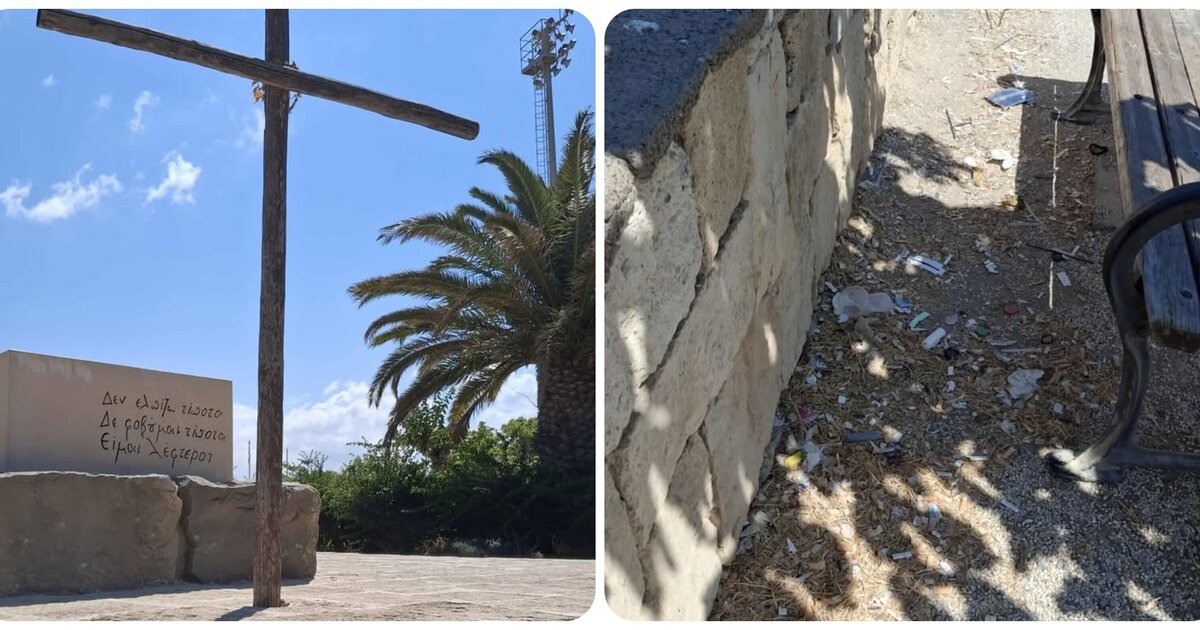 Τάφος Καζαντζάκη: πεταμένα σκουπίδια και ξέχυλοι κάδοι στο μνημείο