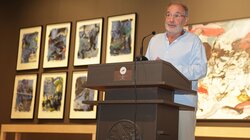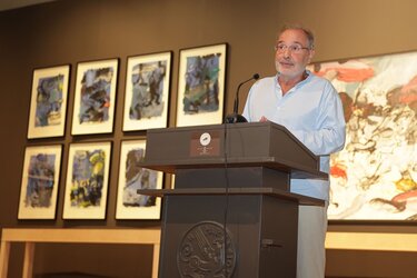 Για το έργο του Νίκου Βισκαδουράκη μίλησαν η Αντιδήμαρχος Πολιτισμού Ρένα Παπαδάκη – Σκαλίδη και ο επιμελητής της έκθεσης, Ομότιμος Καθηγητής του Πανεπιστημίου Αθηνών και Ιστορικός Τέχνης Μάνος Στεφανίδης ενώ το κοινό καλωσόρισε στην έκθεση ο ίδιος ο καλλιτέχνης.
