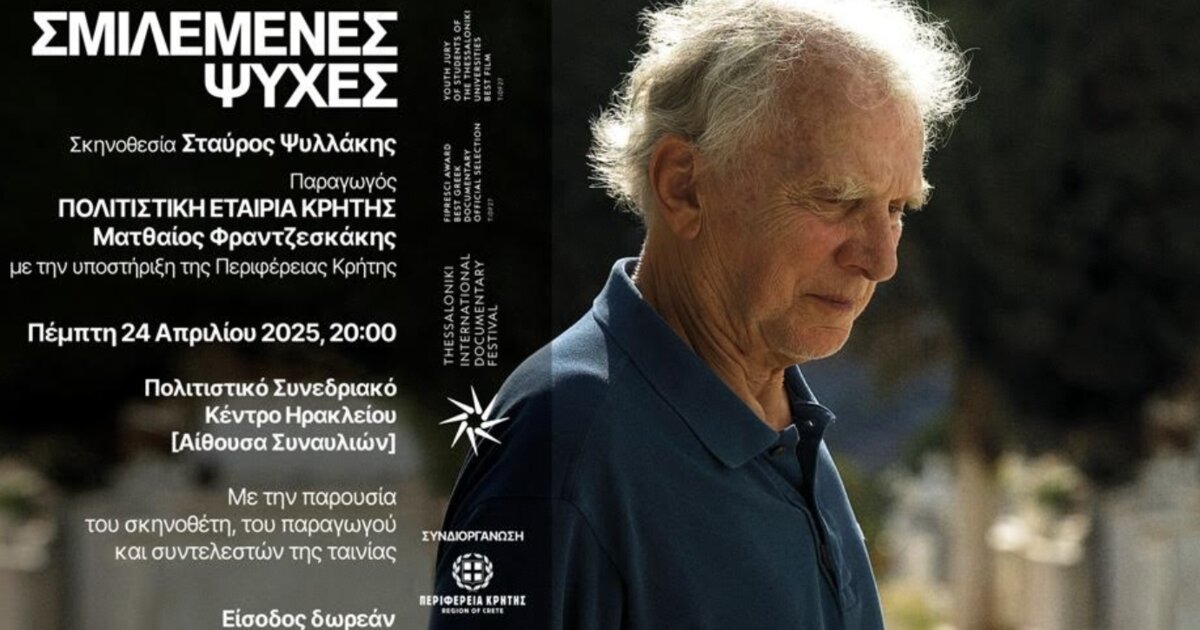 Την Πέμπτη 24 Απριλίου 2025, στις 20:00 θα προβληθεί στην αίθουσα Συναυλιών του Πολιτιστικού Συνεδριακού Κέντρου Ηρακλείου το βραβευμένο ντοκιμαντέρ του Σταύρου Ψυλλάκη με τίτλο «Σμιλεμένες Ψυχές».