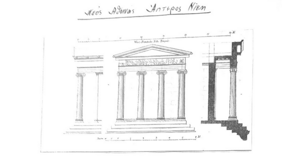 Απομεινάρια μεγάλου και μεγαλόπρεπου ναού, κολώνες μόνο - σωριασμένες άλλες κι άλλες ορθόστηλες ακόμα. Και έγραψε ακριβώς αυτά που τον έκαναν να στοχαστεί, όταν αντίκριζε το θέαμα σαν αποτέλεσμα του ανήλεου χρόνου, που αντικρίζουμε κι εμείς σήμερα:
