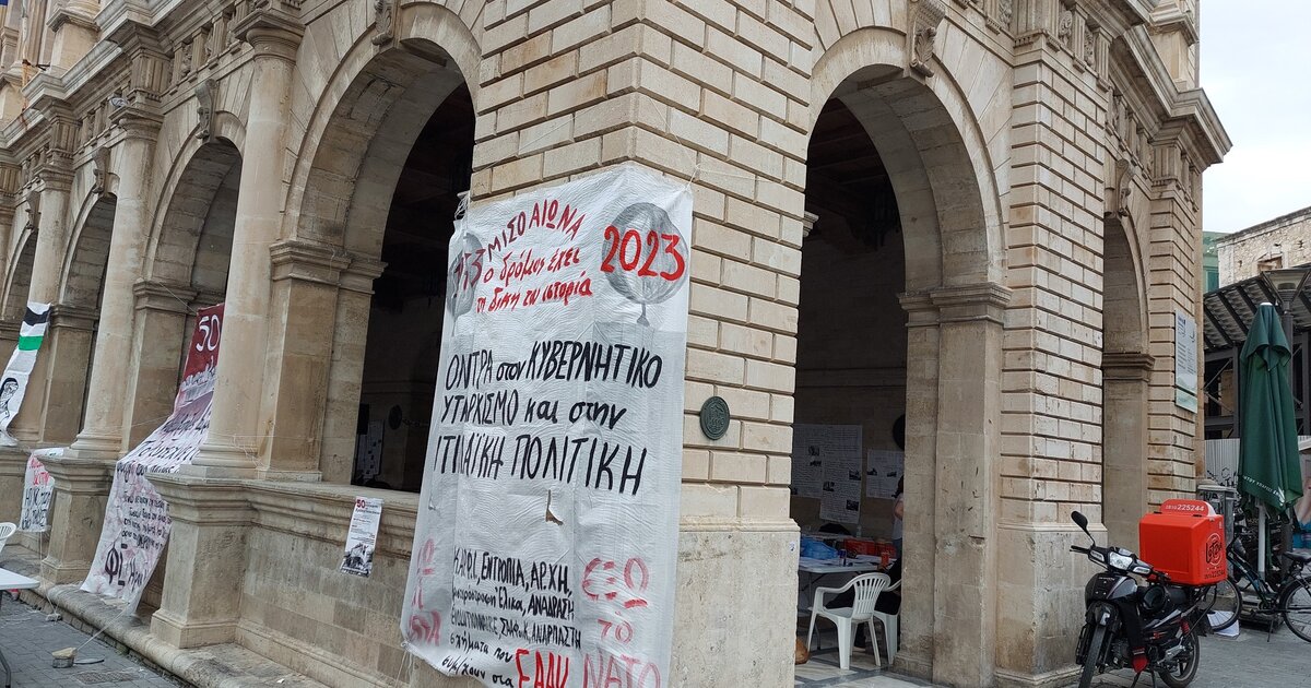 Το μνημείο αυτό επέλεξαν φέτος για τον διήμερο εορτασμό του Πολυτεχνείου, στις 16 και 17 Νοεμβρίου, οι Φοιτητικοί Σύλλογοι Ηρακλείου και άλλοι φορείς κάτι το οποίο και πρόβαλλαν κολλώντας ανεξέλεγκτα αφίσες σε πολλά και διάφορα σημεία της πόλης (στύλους, κολώνες, καφάο, κτήρια). Χωρίς λοιπόν να το σεβαστούν ανάρτησαν εφτά πανό με διάφορα συνθήματα -ένα από αυτά ήταν από Παλαιστίνιους υπέρ της Παλαιστίνης- στην τοξοστοιχία της πρόσοψης του ισογείου επί της 25ης Αυγούστου και όμοια επίσης ανάρτησαν πανό στους τοίχους στην ανοιχτή στοά του ισογείου ενώ έγραψαν και συνθήματα σ αυτούς κολλώντας γράμματα, βανδαλίζοντας και υποβαθμίζοντας δυστυχώς έτσι το μνημείο για δύο μέρες.