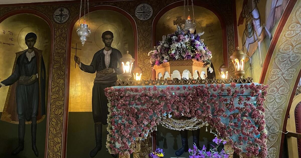 Η μνήμη περιδιαβαίνει στις κοινές στιγμές με τον άνθρωπο του οποίου το μνημόσυνο θα γίνονταν, μα και στις δικές μας απώλειες. Είχαμε έρθει νωρίς και έτσι μπορέσαμε να παρατηρήσουμε το χώρο, τα στασίδια, το άναμμα των κεριών, την εικονογραφία, τον ‘Αγιο Γεώργιο καβάλα στο άλογο και τον Άγιο Δημήτριο επίσης, την μεγάλη ασημένια εικόνα της Παναγίας μας, μα και να ακούσουμε την γλυκιά ψαλμωδία με τα τροπάρια της Εκκλησίας μας, το Ευαγγέλιο, τις προσευχές και το «Χριστός ανέστη» των ημερών. Το « Πάτερ ημών» έψαλαν όλοι μαζί οι πιστοί. Στην εκκλησία συνδέεσαι μυστικά για λίγο με τους υπόλοιπους πιστούς, μέσα από τη συναίσθηση της κοινής θρησκείας και ανθρώπινης μοίρας. Το ημίφως όπως διαχέονταν στο χώρο από τα καντήλια και τα κεριά ενώνονταν με τους γαλήνιους για την ψυχή ήχους από τους παπάδες και τους ψάλτες που ήταν ιδιαίτερα καλλίφωνοι και μας υπέβαλε ακόμα πιο κατανυκτικά γεμίζοντάς μας ηρεμία .
