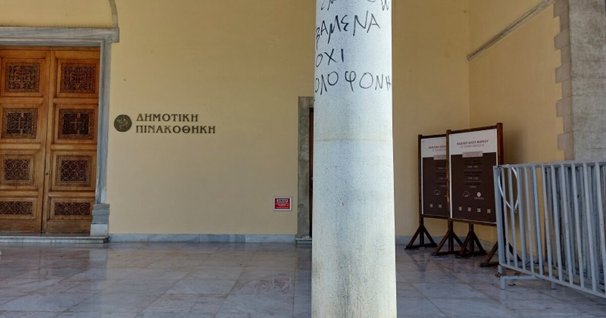 Το μεσημέρι του Σάββατου 15 Ιουλίου, στο πλαίσιο των τριήμερων εκδηλώσεων του αυτοοργανωμένου Pride, πραγματοποιήθηκε η πορεία ορατότητας από οργανώσεις ΛΟΑΤΚΙ κ.α. στο κέντρο της πόλης όπου και βρισκόμουν. Στο τέλος της οι συμμετέχοντες έκαναν σύντομη κατάληψη στο προστώο του ναού -σε ώρες λειτουργίας της έκθεσης- με κάποιους ανεγκέφαλους να βανδαλίζουν δύο από τους έξι κίονές του γράφοντας με μαύρο χρώμα πάνω σε αυτούς τα συνθήματα: “Η ΑΝΑ ΔΕΝ ΞΕΧΝΙΕΤΑΙ – Η ΖΑΚΙ ΔΕΝ ΞΕΧΝΙΕΤΑΙ” στον ένα και “ ΣΑΣ ΕΝΟΧΛΟΥΝ ΤΑ ΒΑΜΕΝΑ ΟΧΙ ΤΑ ΔΟΛΟΦΟΝΗΜΕΝΑ” στον άλλο.