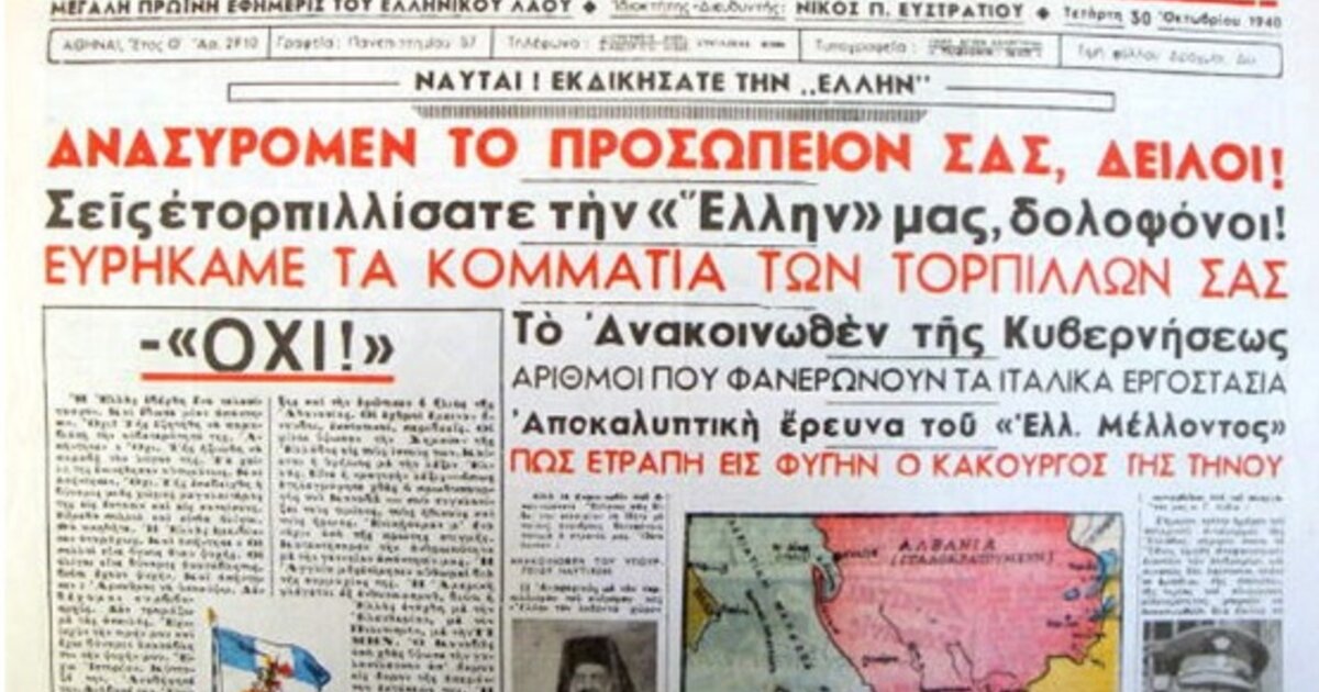 Το πρώτο "ΟΧΙ" εμφανίστηκε σ’ αυτήν την εφημερίδα της εποχής, στις 30 Οκτωβρίου 1940