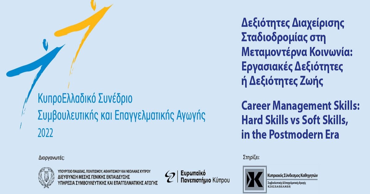 Το ετήσιο Συνέδριο φέτος έφερε τον τίτλο: «Δεξιότητες Διαχείρισης Σταδιοδρομίας στη Μεταμοντέρνα Κοινωνία: Εργασιακές Δεξιότητες ή Δεξιότητες Ζωής / Career Management Skills: Hard Skills vs Soft Skills, in the Postmodern Era».