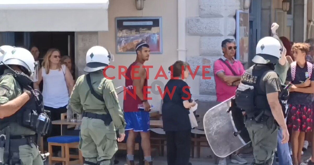 Οι αντεγκλήσεις περιορίστηκαν γρήγορα κι ευτυχώς το στιγμιαίο επεισόδιο έμεινε σε λεκτικό επίπεδο, καθώς ο νεαρός απομακρύνθηκε από τους αστυνομικούς.