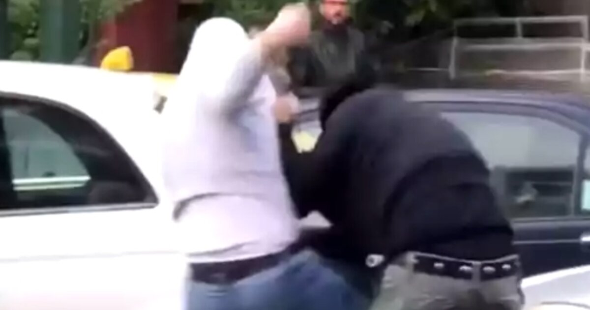 Στη συνέχεια, ο δεύτερος βγαίνει από το αυτοκίνητό του και τα αίματα ανάβουν περισσότερο καθώς έπεσε πολύ ξύλο με μπουνιές και κλωτσιές εκατέρωθεν.