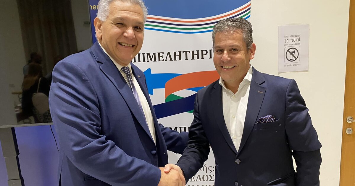 Ένα από τα πρώτα στελέχη της ΝΔ που βρέθηκαν στο Επιμελητήριο Ηρακλείου για να συγχαρούν τον Βαγγέλη Καρκανάκη ήταν ο φίλος και συνοδοιπόρος του Κώστας Γιαννουλάκης.