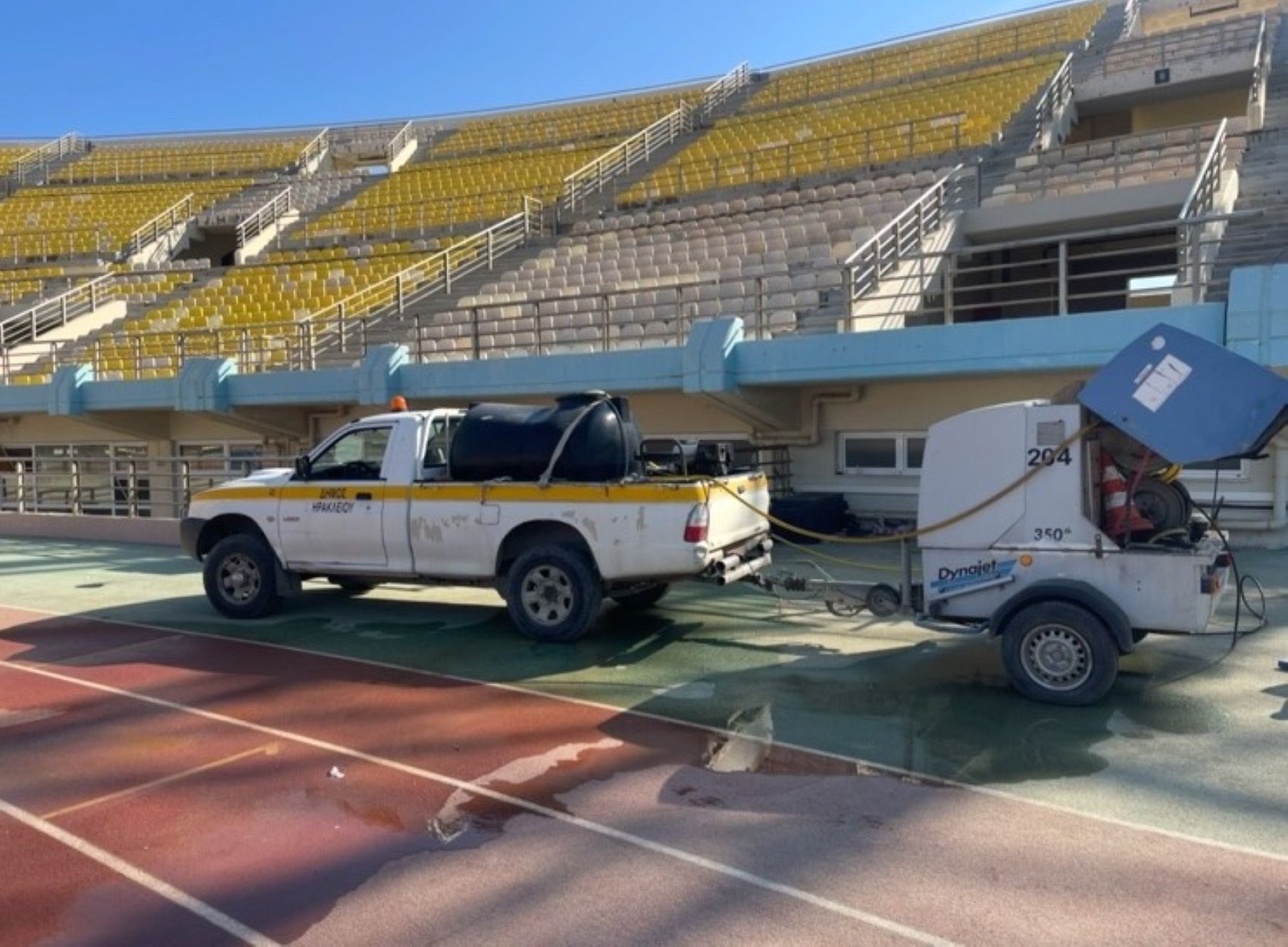 Χρειάστηκε να δουλέψουν πολύ και πολλοί μέσα στο τριήμερο του Αγίου Πνεύματος για να μπορέσει το Παγκρήτιο Στάδιο να καθαριστεί και να επιστρέψει σε μια μορφή κανονικότητας ενόψει και του σημερινού, δεύτερου στη σειρά, φιλικού αγώνα της Εθνικής ομάδας Ποδοσφαίρου κόντρα στη Βουλγαρία.
