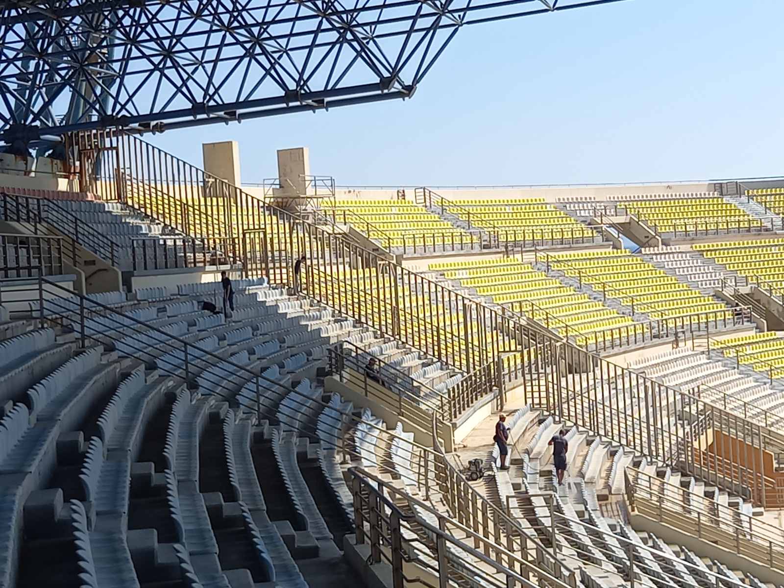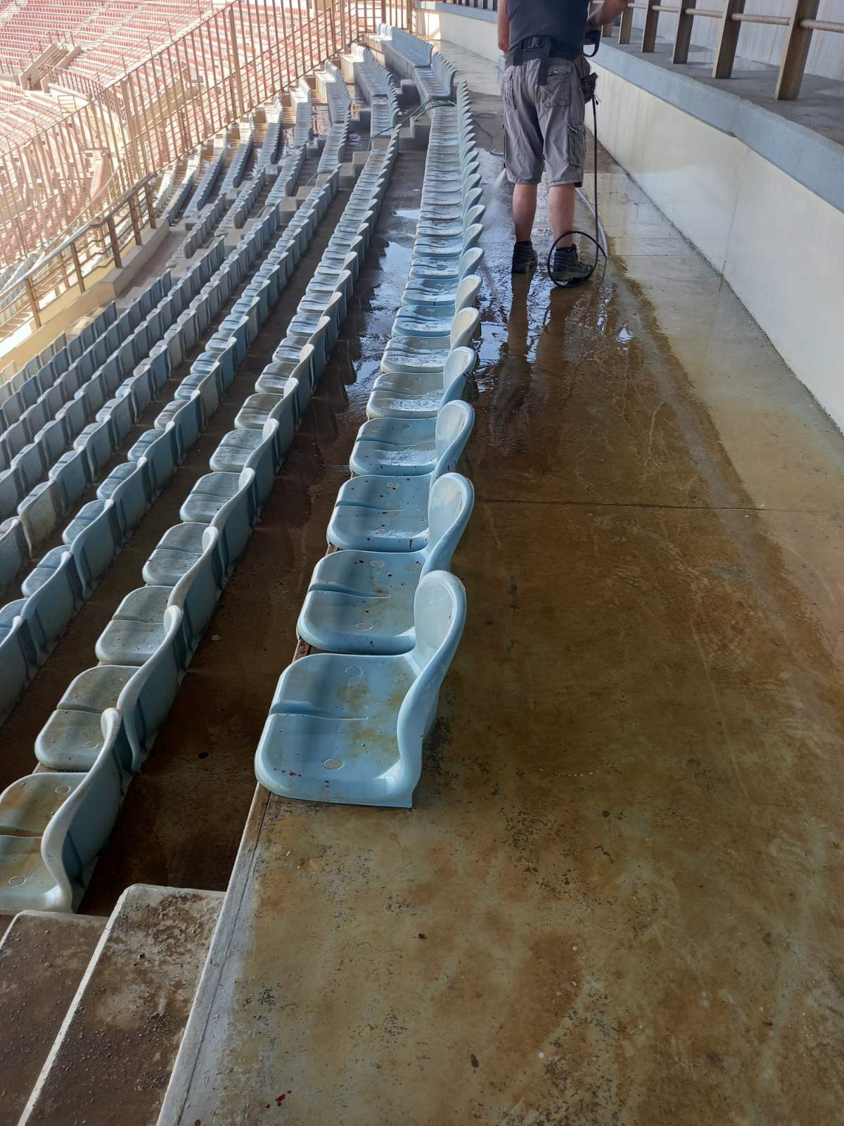 Πάντως όσοι εξακολουθούν και παραμένουν δύσπιστοι, για το εάν τελικώς καθαρίστηκαν τα καθίσματα, η – προς το λευκό – επικάλυψή τους δεν οφείλεται στη σκόνη, που απομακρύνθηκε σύμφωνα με τις διαβεβαιώσεις – αλλά στο… ξεθώριασμα του χρόνου. Είναι και η τοποθεσία του Σταδίου, βλέπετε, τέτοια: μια ανάσα από το… κύμα, του κρητικού πελάγους!