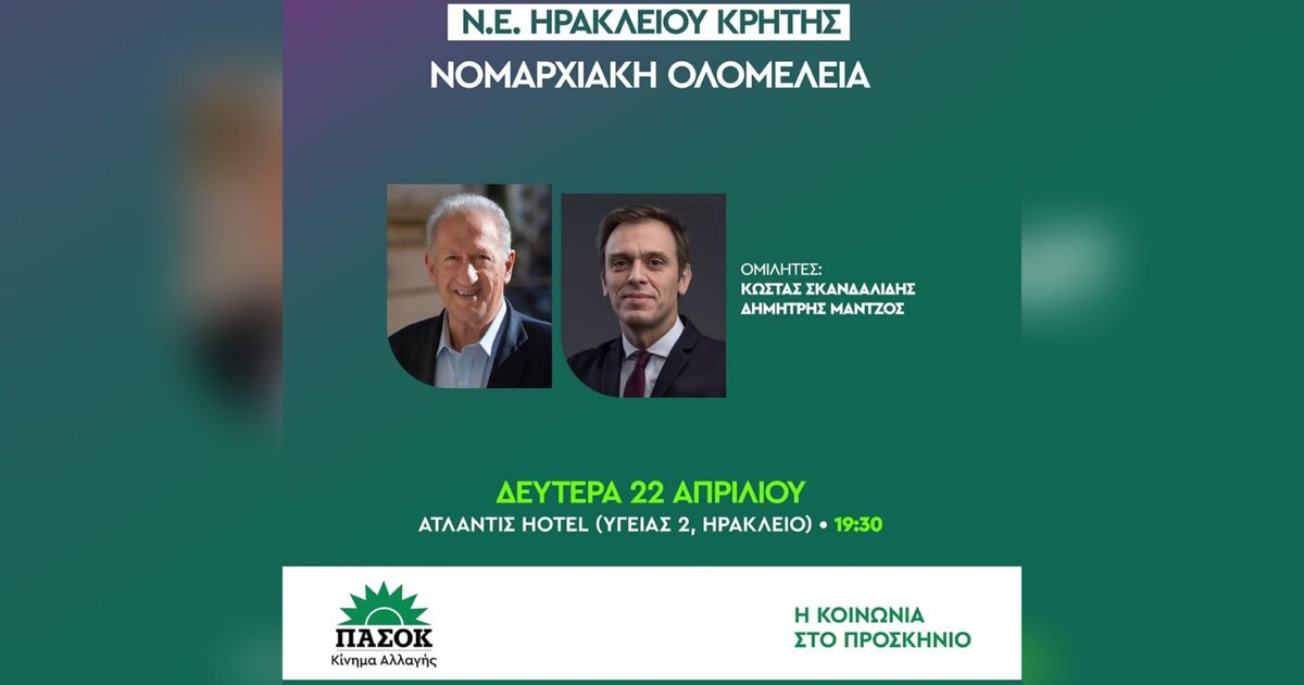 Βάζει μπροστά την εκλογική του μηχανή το ΠΑΣΟΚ που απόψε στις 7.30, στο ξενοδοχείο "Ατλαντίς" με τη συνεδρίαση της Νομαρχιακής Εκλογικής Επιτροπής Εκλογικού Αγώνα και παρουσία δυο επιφανών στελεχών του του Κώστα Σκανδαλίδη και του Δημήτρη Μάντζο, χτυπά τον κώδωνα της έναρξης της προεκλογικής περιόδου.