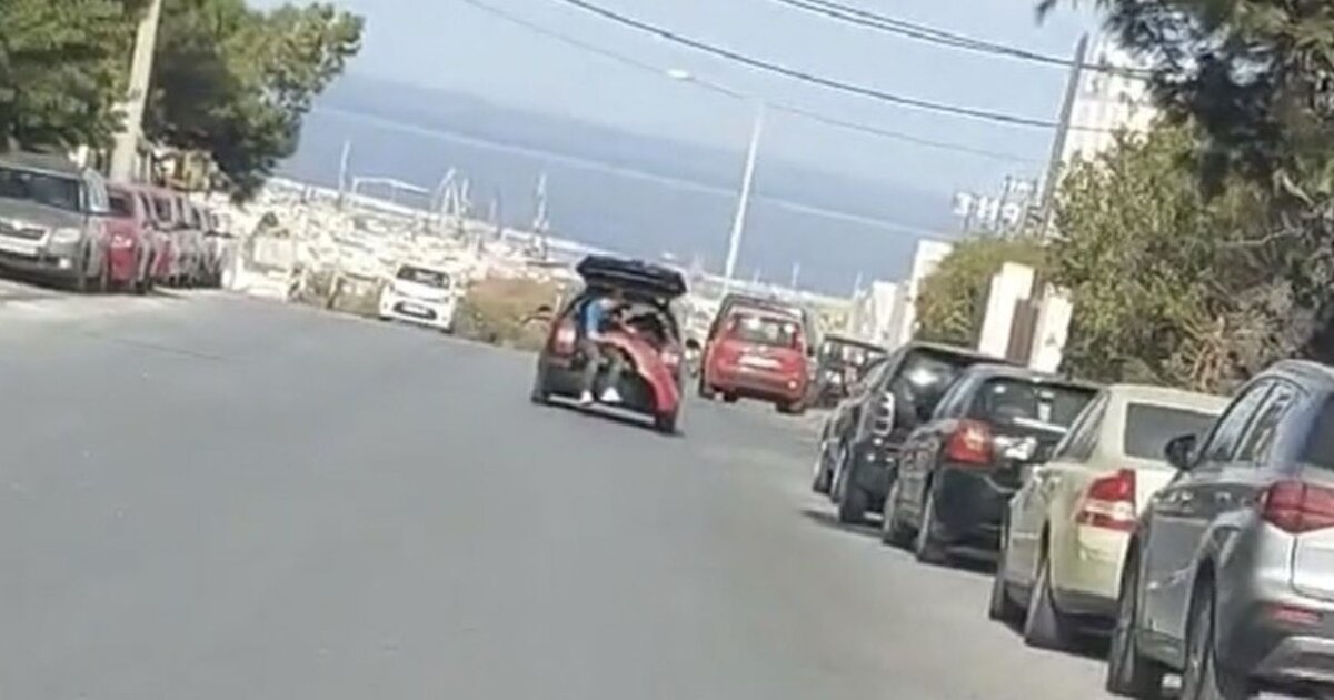Αν το θέαμα που αντικρίζουμε αρκετά συχνά στην Κρήτη, ανθρώπους να κάθονται στις καρότσες αγροτικών οχημάτων, θεωρείται επικίνδυνο, το ίδιο και σε μεγαλύτερο βαθμό ισχύει και για εκείνους που επιλέγουν να κάτσουν σε ανοιχτό πορτ μπαγκάζ ενός αυτοκινήτου! Η φωτογραφία που ανέβασε ο Γιάννης Λιονάκης στον προσωπικό του λογαριασμό στο Facebook "μιλά" από μόνη της.