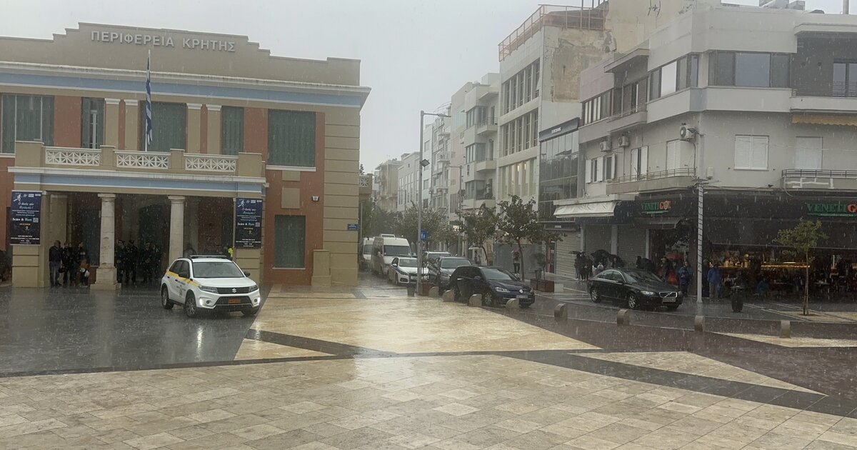 “Άνοιξαν” οι ουρανοί στο Ηράκλειο – Εθνική γιορτή με καταιγίδες και άδειους δρόμους