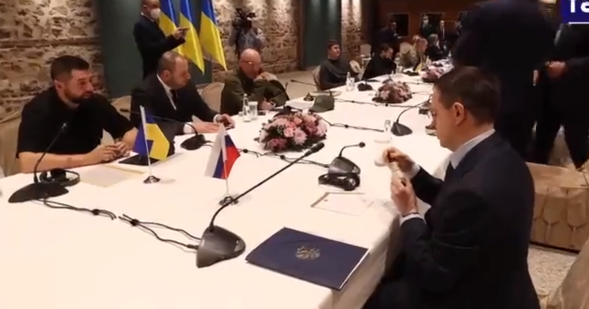 Ένα μικρό απόσπασμα από το τραπέζι των συνομιλιών δημοσίευσε το ουκρανικό Nexta όπου ακούγεται ο Ουκρανός εκπρόσωπος Νταβίντ Αρακχάμια να λέει στον Ρώσο Βλαντιμίρ Μεντίνσκι: