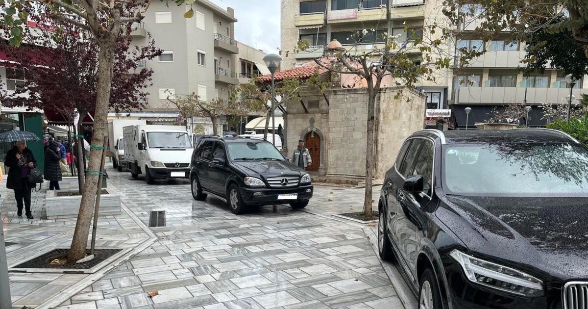 Το πλακόστρωτο που οδηγεί από την Πλατεία Κορνάρου στην παραδοσιακή αγορά της οδού 1866, ακριβώς δίπλα στον ιστορικό Κουμπέ έχει μετατραπεί σε υπαίθριο πάρκινγκ! Οδηγοί στάθμευσαν ανενόχλητοι τα οχήματά τους, τουλάχιστον τέσσερα όπως βλέπετε και στη σχετική φωτογραφία και έφυγαν για τις δουλειές τους.