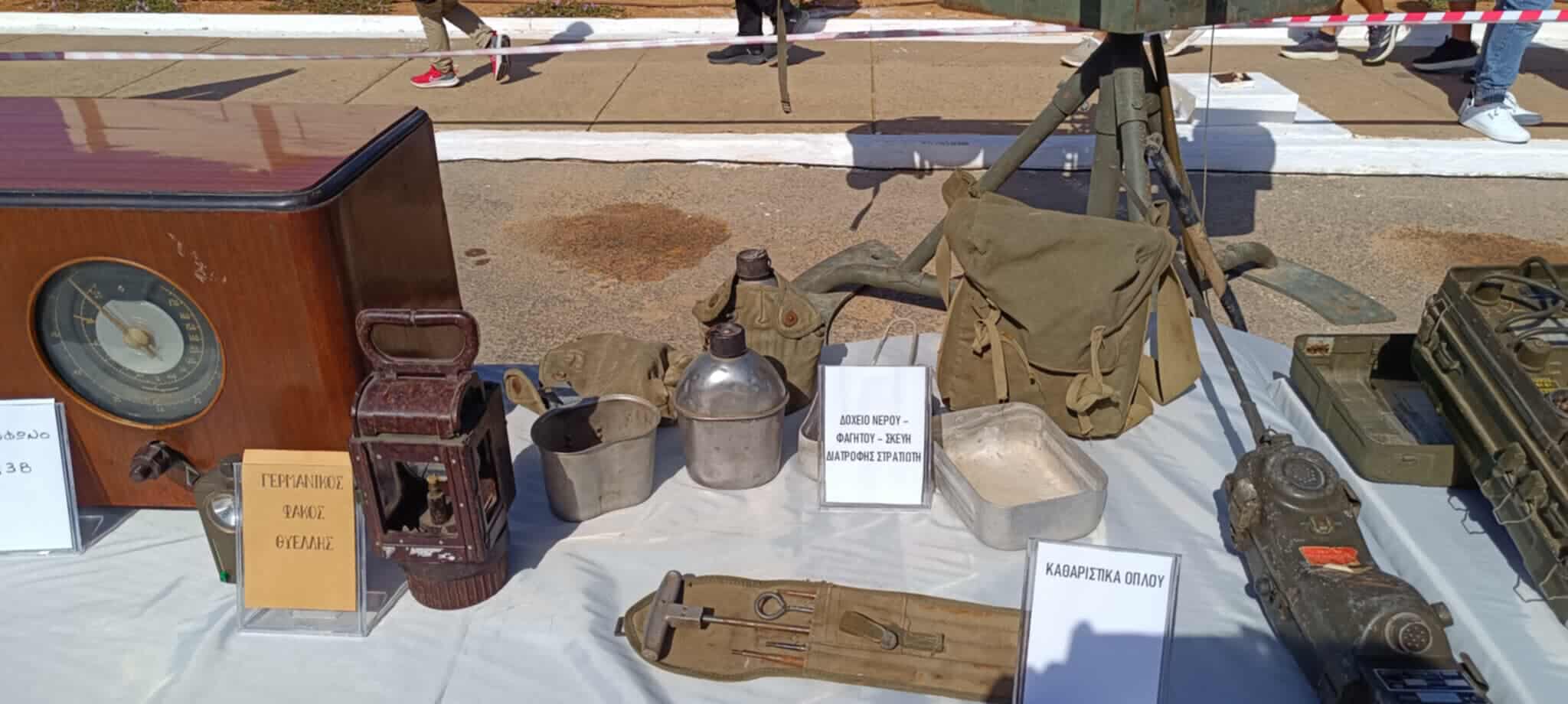 Ανάμεσα στα σπουδαία εκθέματα του Μανώλη Θαλασσινού, ξεχώρισαν ένα ασθενοφόρο εποχής πλήρως εξοπλισμένο, ραδιόφωνο και συσκευές επικοινωνίας της περιόδου, στρατιωτικά κράνη, ένα αυθεντικό τζιπ του 1944 και ένα αλεξίπτωτο.
