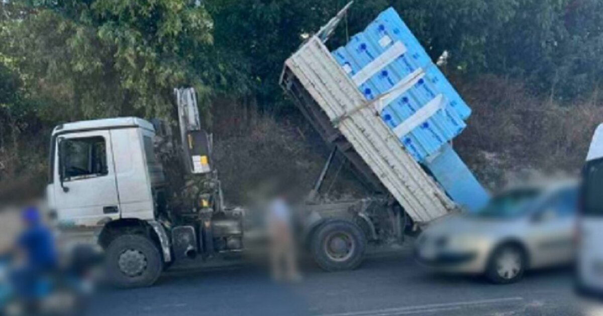 Ένα ασυνήθιστο ατύχημα καταγράφηκε σήμερα και είχε ως αποτέλεσμα, το φορτίο από ένα επαγγελματικό όχημα τύπου φορτηγάκι να καταλήξει στο... οδόστρωμα.