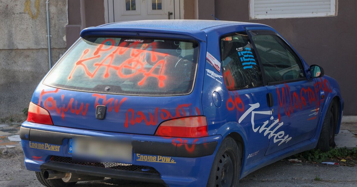 Με κόκκινο σπρέι έγραψαν υβριστικές εκφράσεις στο μπλε ΙΧ που ο 44χρονος είχε "διακοσμήσει" με το παρατσούκλι "Killer" που ο ίδιος απέδιδε στον εαυτό του και στα κοινωνικά δίκτυα, όπου αυτάρεσκα πόζαρε.